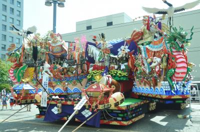 今回の東北旅行で八戸訪問は最初の計画になかったが、ちょうど八戸三社大祭の時期で、このお祭りは290年の歴史と伝統があり、国指定無形重要文化財にも指定されていることを知り、行くことにした。当日は午前中に平泉をまわり、新幹線で八戸に行き、本八戸行きの普通列車に乗った。本八戸に向かう列車はとても混んでおり、多くの人が本八戸で降りた。3時開始の予定で1時間半ぐらい早く本八戸駅に着いたが、特に行くところもなかったので、スタート地点である八戸市役所前に行ってみた。出番を待つ山車が勢揃いして見事な眺めだった。そのうち何やら人が大勢集まっているところがあるので行ってみると、どこかの団体が山車の前で業者による記念写真を撮っていた。驚いたのは、その山車が仕掛けで大きくなったことだ。ビルの4階ぐらいの高さがあった。そのうち3時になったが、なかなか動き出さなかった。帰りの列車のことを考えると、終わるまで見ていると八戸行きの列車が大混雑になると思い、少し早めに引き上げた。山車はほとんど見たと思うが、ド迫力だった。