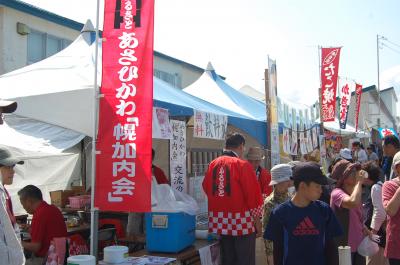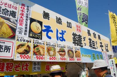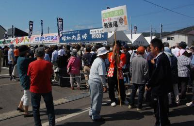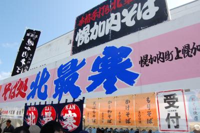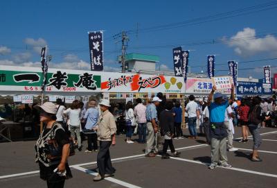 幌加内町の新そば祭に初めて行ってみた。ナビに従って、国道275号線を進むと意外と早く到着した。会場周辺には、仮設と思われる広い駐車場が設置されていた。車を置いて会場に向かうと、会場は役場前広場のようで、沿道には蕎麦や蕎麦道具関係の他、お祭りの屋台のような出店がたくさん並んでいた。そしていよいよ、新そばの出店が並ぶ役場前広場に出ると、長蛇の列になっている所があり、幌加内高校の出店だった。やはりネット情報通りの大盛況だった。長時間並ぶのは嫌なので、一通り見て選んだのは「北最果」、ここも並んでいたが行列は数分程度ですみ、全品500円だったから。ここで盛りそばと天ぷらそばを注文して、仮設テントに場所を見つけて食べた。天ぷら蕎麦は普通だったが、盛り蕎麦は、新蕎麦の香りと味がハッキリわかった。やはり冷たい蕎麦が、新そばの感触が明確に伝わってきた。もう少しいけそうなので、連れ合いのリクエストで韃靼そばを食した。初めて食べたが、色がやや黄色っぽく、盛りそばほどの新蕎麦感はなかったが、こういうものなんだろう。連れ合いは、めんつゆはこっち(韃靼そば)の方がおいしいと言っていた。駐車場への帰路、そば職人の方が蕎麦打ちをされている所があり、見学させて頂くと、気さくにお話してくれた。そこは「白樺」さんというお店に提供し、幌加内高校に次ぎ人気NO2とのこと。是非行ってみたい。