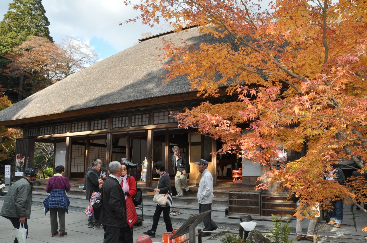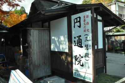 円通院は瑞厳寺に隣接したお寺で、伊達政宗公嫡孫光宗公の菩提寺。門をくぐると目の前に、見事な庭園が広がっている。まだ紅葉も残っており、カメラマンだらけだった。その先を進むと、重要文化財に指定されている三慧殿があり、これは夭逝した光宗公を悼んで、二代藩主忠宗公によって建立された。その厨子には支倉常長が西欧から持ち帰ったバラが描かれている。だからこのお寺には、バラ庭園があるようだ。時期的にピークは過ぎていたが咲いてるのも少しあった。そしてもう1つ、ここには光宗公の江戸納涼の亭である大悲亭がある。現存する当時の建造物はここだけらしく、大変貴重だ。