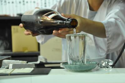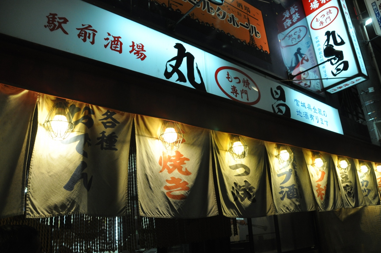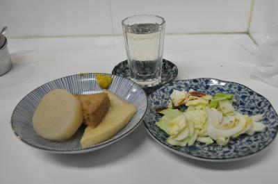 仙台訪問初日の6時頃に行ったら、店の前で数名が行列をつくっていた。近くの方に聞いてみると、その方は5時頃に来て待っており「4時の開店で入った人達はそろそろ出るかもしれない」とのこと。とても待っていられないので、この日は断念。翌日、何とか5時過ぎに到着した。行列は二人だったので待っていると、ほどなく案内された。入口近くで少し落ち着かないが、気にしなければいい。いよいよ注文したのはまず地酒の鳳陽、そしておでんや焼き鳥などを頼んだ。一升瓶から並々と注いでくれて、カウンターから手元に持ってくるときにこぼれてしまったほど。とてもリーズナブルに東北の地酒を楽しんだ。