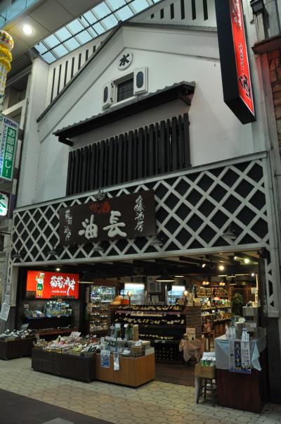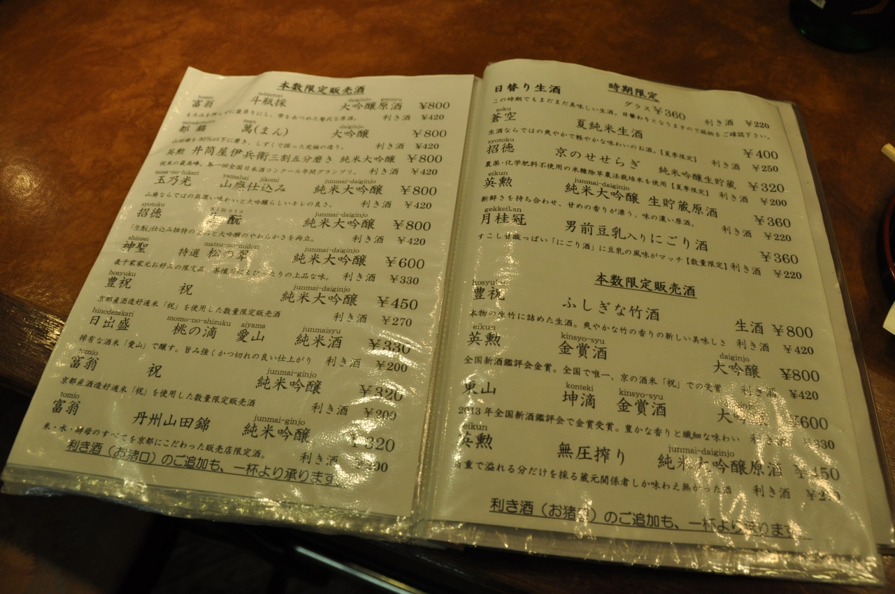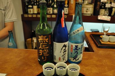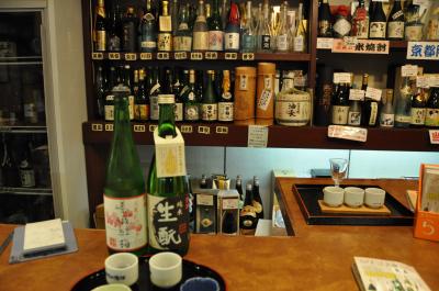 京阪電車を伏見桃山駅で降りて、目的地である吟醸酒房「油長」さんに向かった。土地勘は全くなく、地図を見ながら迷いながら歩いて、ようやく油長さんに辿り着いた。ここは角打ち、つまり立ち飲みで利き酒ができる店だ。といってもバーのようなカウンターがあって、椅子もある。伏見の20の蔵元と常時80種類の酒を取り扱っているということだ。飲み比べができるので、実に楽しかった。