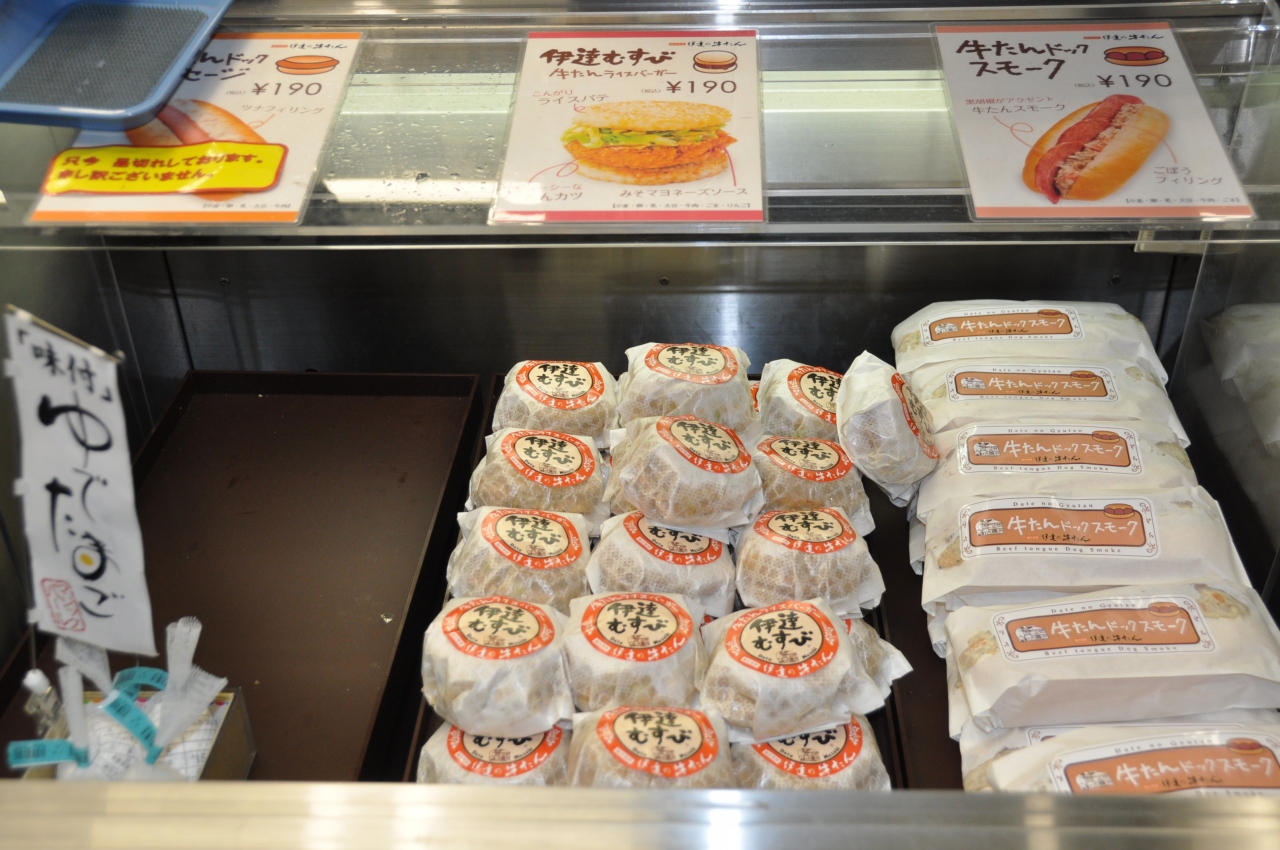3種類のうち、牛タンドックソーセージは売り切れだったので、スモーク2個とライスバーガーを3個買い、ライスバーガー1個はレンジでチンして空港で食べた。牛タンがカツになりマヨネーズの味がきいていて、結構おいしかった。牛タンドックスモークの方は、スライスした牛タンが入っていた。