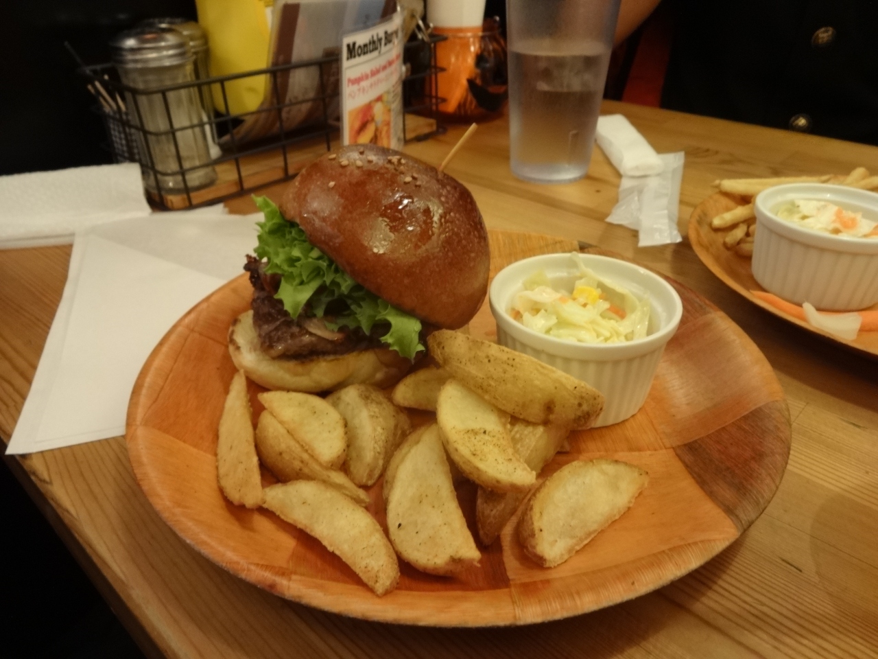 ジャクソンビルは市電を降りて少し歩いたところにある、ハンバーガーショップだ。ハンバーガーにはチーズバーガーやベーコンバーガーなどがあり、プレートで注文すると、ポテトとサラダが付いてきて、ドリンクとセットで1000円前後だ。どのメニューも大きくてボリューミーだった。