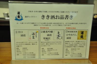 塩釜神社参拝後に浦霞醸造元に行った。今回の仙台行きで、是非寄りたいと思っていた。ここは有料の試飲というか、利き酒ができる。普段、試飲や利き酒は簡単にはできないので貴重な機会だった。300円でお猪口を購入して試飲し、お猪口は試飲後にお持ち帰りとなる。試飲で出して頂いたのは、「からくち浦霞」「純米吟醸 寒風沢」「ひやおろし浦霞」の3種類と梅酒だ。色々と説明を聞きながら試飲した。スッキリとした辛口だった。