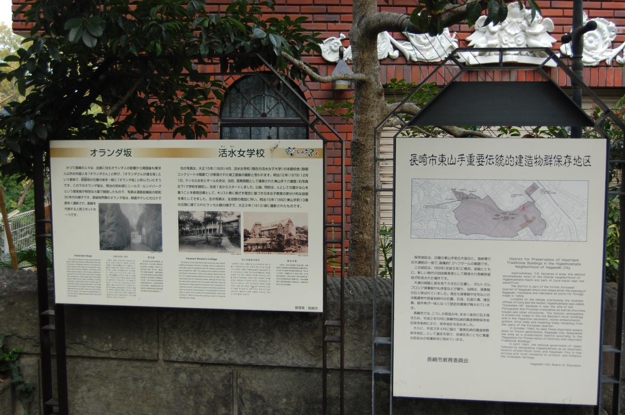 朝の散歩で、孔子廟前から坂を登っていったら「オランダ坂」の表示があった。道が二手に分かれていたので、少し広めに見えた右側を登っていくと、東山手洋風住宅群、海星学園、東山手十二番館、活水女子大と続き、やがて下にたどり着いた。かつて幕末から明治にかけて長崎の人々は東洋人以外の外国人を「オランダさん」と呼び、この坂はオランダさんたちが多く歩いていたことから「オランダ坂」と名付けられたそうだ。そのようなことに思いを馳せながら歩いていると、楽しい早朝散歩になった。