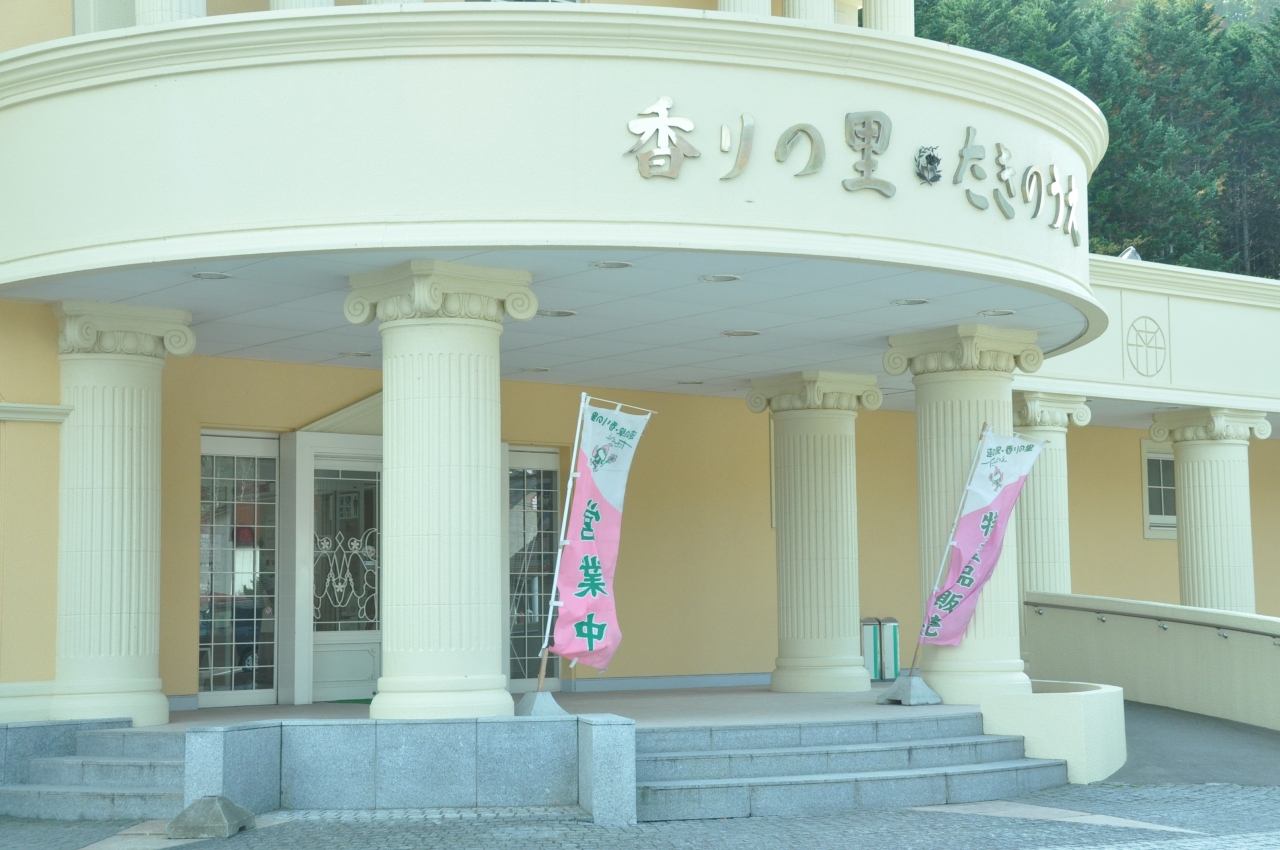 道の駅「香りの里たきのうえ」の外観はお城のようで、香りの里というだけあってハーブ関係のお土産品をたくさん取りそろえ、木工芸品の展示販売コーナーもあった。そしてここのウリは、ちょい食べコーナーではないだろうか。サンドイッチ、つめたいぜんざい、みたらしだんご、ちょい食べフロマージュなどを「お試し価格」で販売していた。気に入ったらレギュラーサイズを購入ということなのだろう。他に、飲むチーズやちょい食べクリームチーズなどを販売していた。また、小さいながらもイートインスペースもあった。