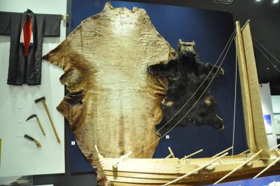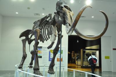 今年4月にリニューアルオープンしてから、初めて訪問した。北海道博物館は、北海道開拓記念館と道立アイヌ民族文化研究センターを統合して新たに開設された。プロローグとして北からのマンモスと、南からのナウマンゾウの骨格標本が展示され、右に進めば「アイヌ文化の世界」、左に進めば「北海道120万年物語」の展示が広がる。