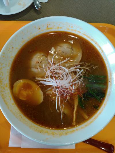 まあぶの温泉には何回も入っているが、今回、孫が遊びにきたので、妻と共に3人でりんご園にりんごを買いに行って、そのついでに近くにあったアグリ工房でお昼を食べることにした。自分はラーメンを頼みたかったが「黒米辛味噌ラーメン」しかなかったので、券売機でその券を買った。自分達が入る前にちょっとした団体が入ったので、「時間がかかりますよ」と言われたが、食券を買った後に言われてもねえ。実際言われた通りで30分ぐらい待たされ、ドリンクバーを再注文してコーヒーを飲んで待った。ようやく黒米ラーメンが到着すると、食べる前から丼のまわりに汁の跡がついているような感じで、写真の通り。黒米はラーメンの麺に練り込んであって黒い麺で、普通においしかった。