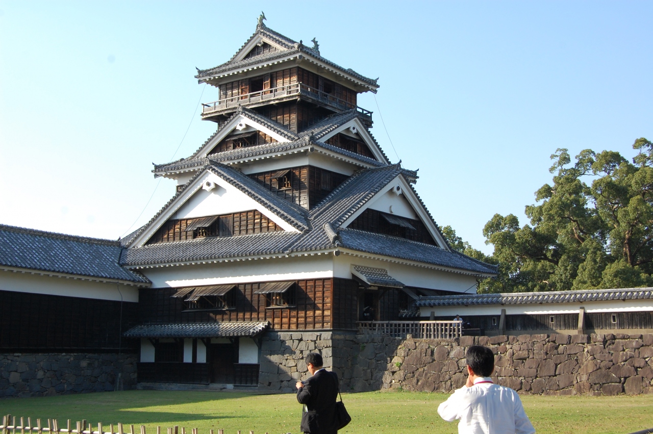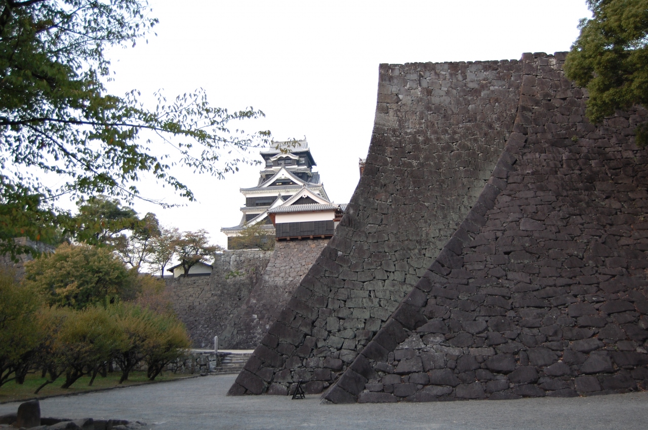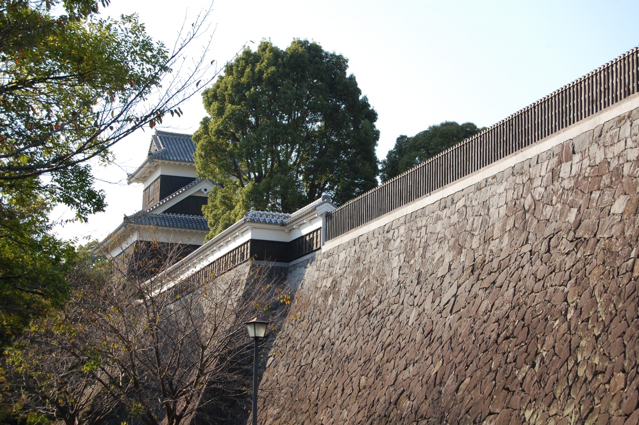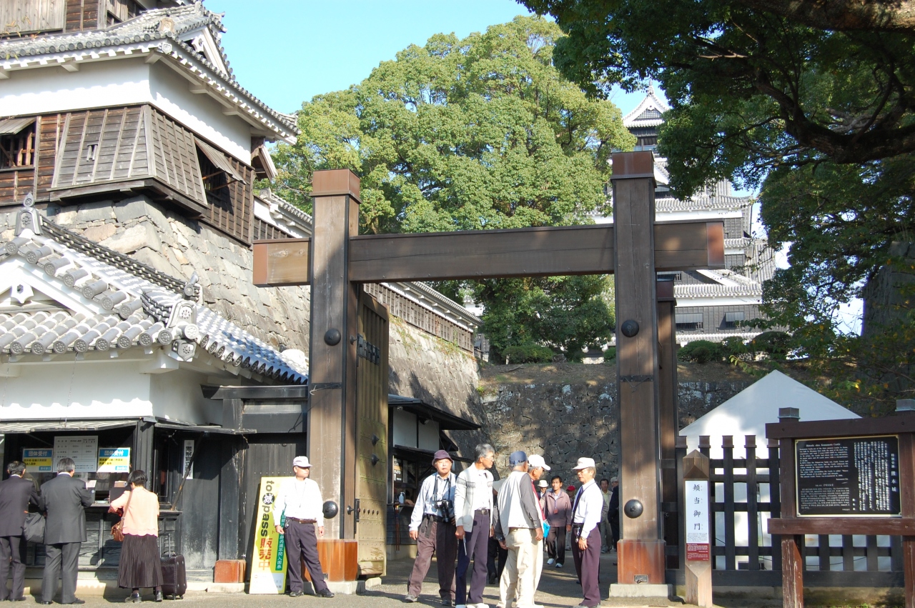 熊本に行くことになり、熊本といえばまずは熊本城だが「熊本城天守閣は再建だしなあ」と熊本城訪問に最初はあまり乗り気ではなかった。ところが初の九州旅行として熊本に到着し、ホテルに荷物を置いて熊本城を目指して加藤清正公像が見えた頃からちょっとワクワク感が出てきた。頬当御門から入り、天守閣を目指して石垣に囲まれた通路を進むうちに城全体の規模の大きさを実感し、宇土櫓の中に入って創建当時の様子に触れ、宇土櫓から大天守・小天守を見た時にその迫力で圧倒された。これはすごいぞと実感した。天守閣の入り口は大天守と小天守の間に位置し、武士の装束を身につけた方が気軽に写真撮影に応じてくれた。天守閣内部は熊本博物館分館となっており、1階は加藤家時代、2階は細川家時代、3階は西南戦争関連の資料を展示しており、最上階からは周囲の景観が一望できる。そして平成20年に復元された本丸御殿は、昭君の間を頂点としてふすま絵も素晴らしく、それぞれの間が格式によって異なる様式であることがわかった。二様の石垣もその壮大さに圧倒される。さすがは天下の名城である。