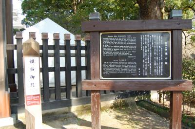 初の熊本城訪問だったので、経路などはよくわからなかったが、人の流れに沿って行ったらたどり着いたのが頬当御門。この門の奥に大天守閣が見え、大天守閣を顔に見立てると、この門は頬のあたりになることから、顔の前に当てる甲冑の部品の名前から名付けられたのではないかといわれている。現在、城内への入口として使われている門は4ヵ所あり、その中でもメインとなっている門が頬当御門。2本の門柱の上に貫を渡した“冠木門(かぶきもん)”という形式で、昭和35年(1960年)に旧図に基づいて再建された。頬当御門から宇土櫓や天守閣に向かう経路は石垣に囲まれて真っ直ぐには進めず、戦乱の時代は敵の侵入を妨ぐためであったことがよくわかる。