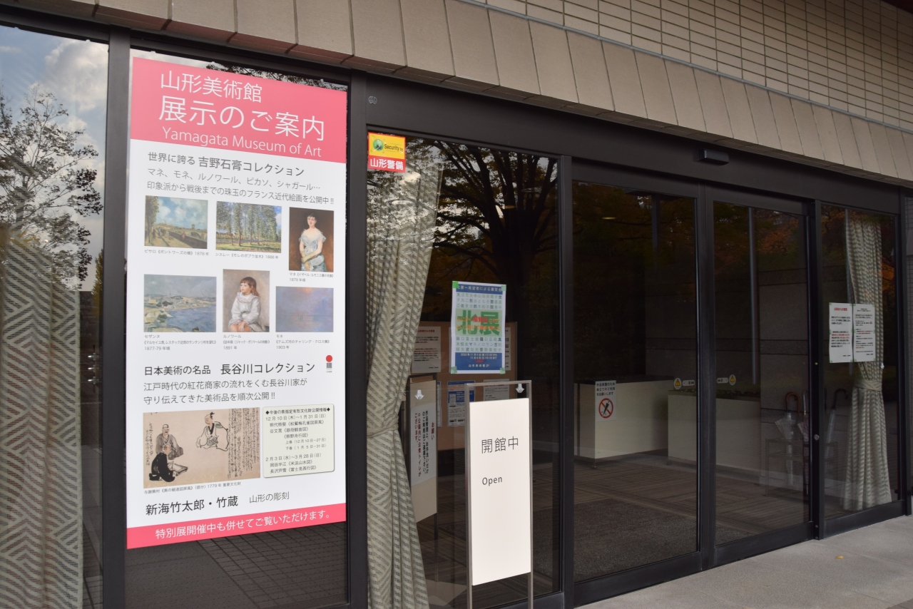 「長谷川コレクション」は、1968年に山形銀行の長谷川前会長より、重要文化財の与謝蕪村「奥の細道図屏風」を含む美術品163点が寄贈され、その後も松尾芭蕉「出羽三山短冊」等の寄贈を受け、2つの長谷川家からなる当コレクションは江戸時代の狩野派、文人画、円山四条派系統的にたどることのできる内容になっている、ということだ。