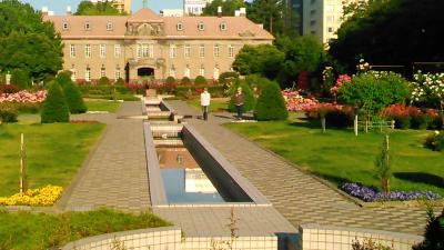 資料館に一直線に向かう水路そして周囲が様々な種類のバラで彩られている様子は、5月に訪問した時より益々ヨーロッパのどこかの国のお城のようで、スマホカメラにはとても収まりきれないほど美しい風景だった。なお大通り公園西12丁目の南側(サンクガーデン真向かいということ)にコイン駐車場があったのでとても便利であり、早朝だったので駐車料金100円で小一時間たっぷりと楽しめた。- 旅行時期