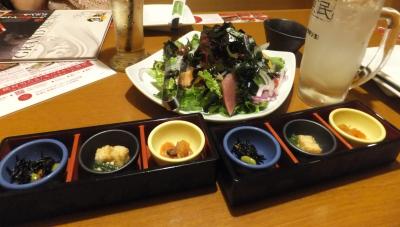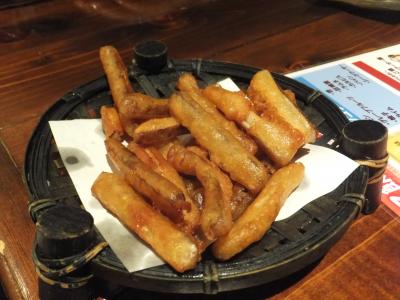 ここは全品315円とのことだったので、連れ合いとの京都旅行の際に行ってみた。六角酒場ちゃぶちゃぶに来る前に伏見の吟醸酒房:油長さんで結構飲んできたのでウオーミングアップは十分だった。まずビールを注文し、次にカシスオレンジを何杯か飲んだ。食べ物は、甘エビの唐揚げ、シーザーサラダ、オニオンリング、かつおのたたき、かも肉、若鶏の唐揚げなど、どれも300円(税抜)だったのでどんどん注文し、それぞれおいしかった。ハズレはなかったように思う。京都の夜を楽しく過ごすことができた。