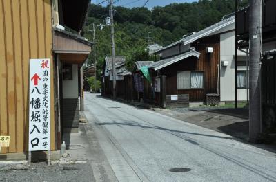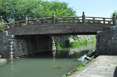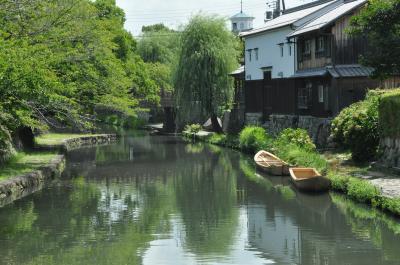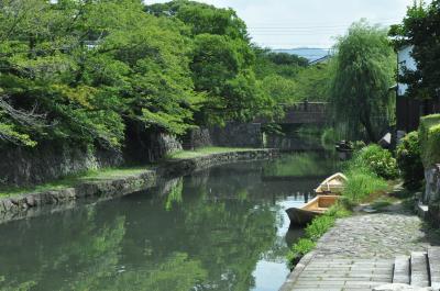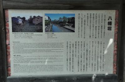 昔の街並みや風情を味わいたくて、近江八幡に行った。それらを一番感じられる所は八幡堀だろうということで、JR近江八幡駅からバスに乗って、たしか小幡上筋というところで降りた。途中幾つかの名所や旧跡を周りながら八幡堀に辿り着いた。八幡堀の看板には「豊臣秀次はこの八幡堀を運河として利用する事を考え、琵琶湖を往来する荷船を全て八幡の町へ寄港させ、楽市楽座の導入もあり、商人の町として栄えた。しかし近江商人が活躍した八幡堀も昭和30年代になると高度経済成長期に入り人々の生活も変化する中で、八幡堀はドブ川のようになり埋め立てられようとした。そこで市民が立ち上がり清掃活動に取り組み、八幡堀はかつての姿を取り戻した。」という事が書いてあった。今日の風情のある美しい姿は、市民の方々の努力によって再生されたことがよくわかった。現在、国の伝統的建造物郡保存地区に指定されている、それにしても、堀、両岸の景色、橋どこをとっても絵になるねえ。