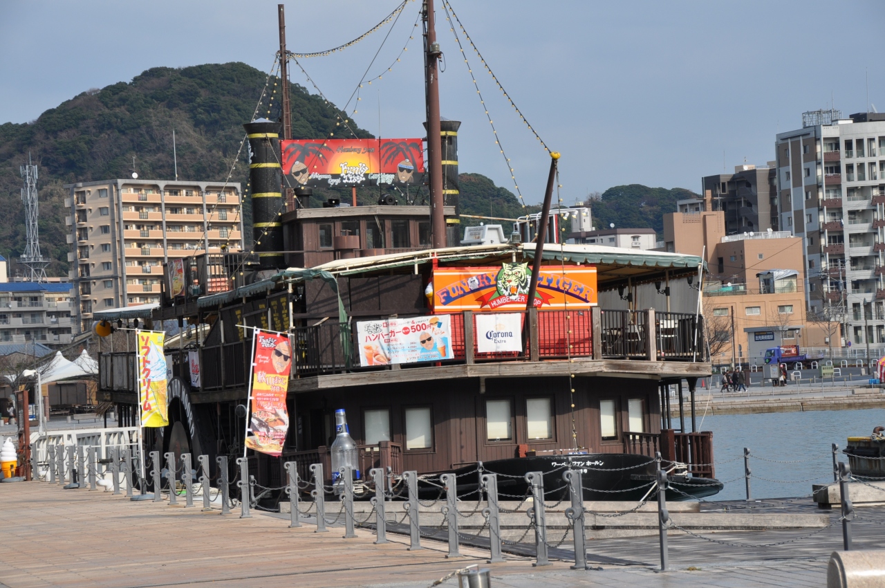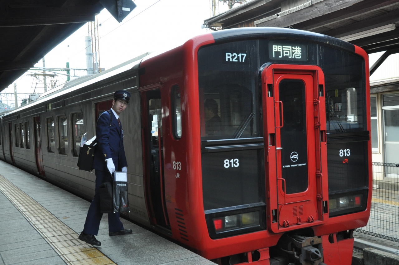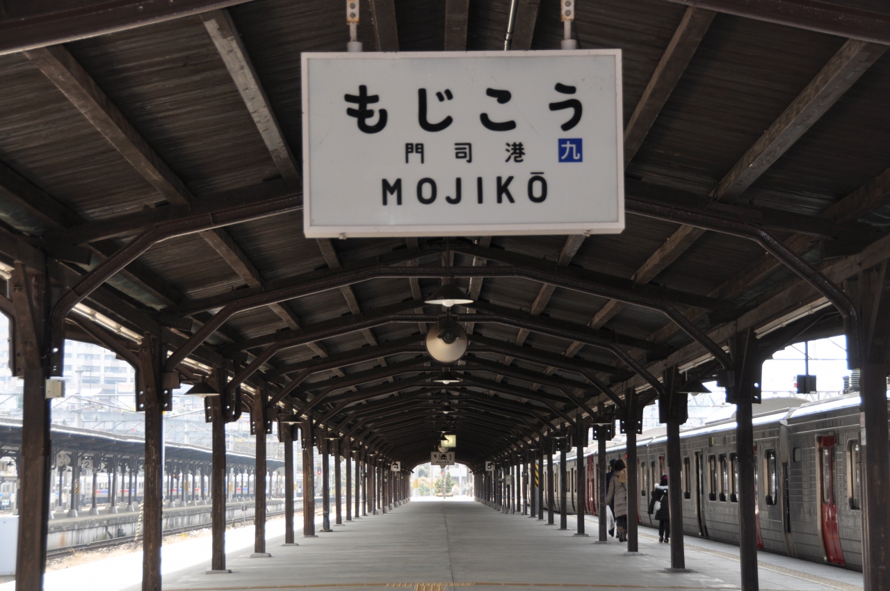 フルムーングリーンパスの旅3日目は、三河安城のホテルを出発して新幹線で一路、博多を目指した。その途中に立ち寄ったのが門司港である。というのも、三河安城を予定より一本早いこだまに乗れたので、門司港に立ち寄ることにした。小倉で新幹線さくら号から普通列車に乗り換えて門司港に近づくにつれて、いかにもという趣の列車と何回もすれ違い、にわか鉄ちゃんの心がくすぐられた。いよいよ門司港に到着すると、レトロな雰囲気の列車が何両もあるし、駅名やトイレの標識などもレトロで、「とうとう門司港に来た」という気持ちにさせてくれた。惜しむらくは駅舎が改修工事中で全貌をこの目で見ることができなかったこと。ただ修復工事中のフェンスの奥から、老朽化した門司港駅舎の一部がかいま見えたところに、レトロなままの雰囲気を感じ、写真に収めることができたのは大きな収穫だった。