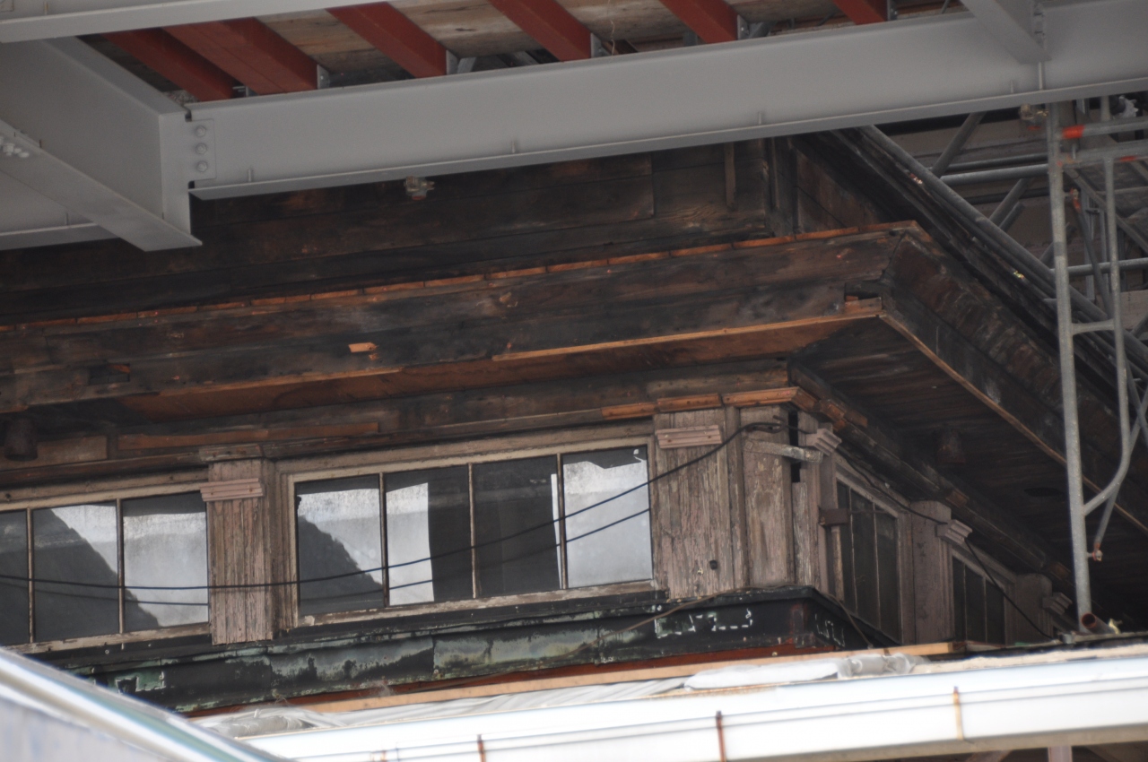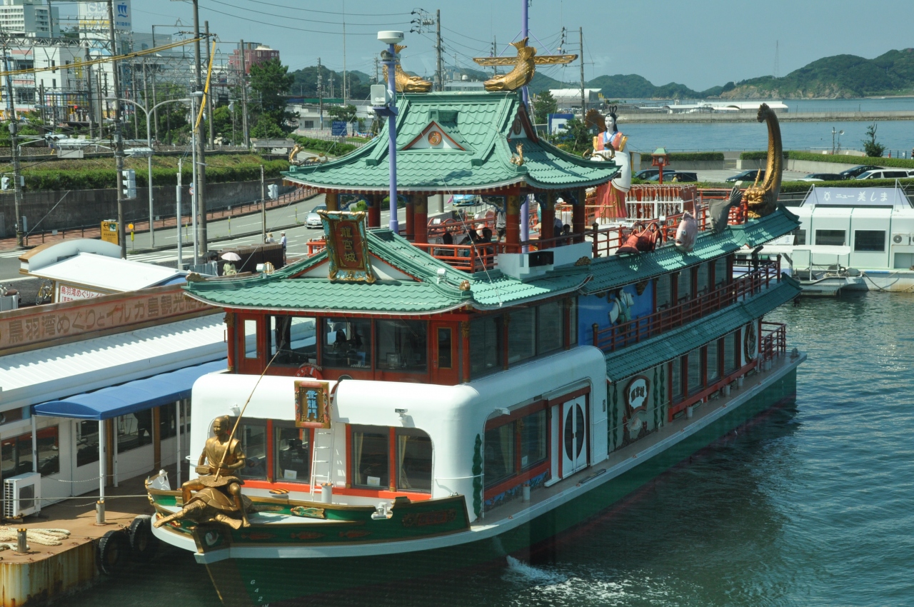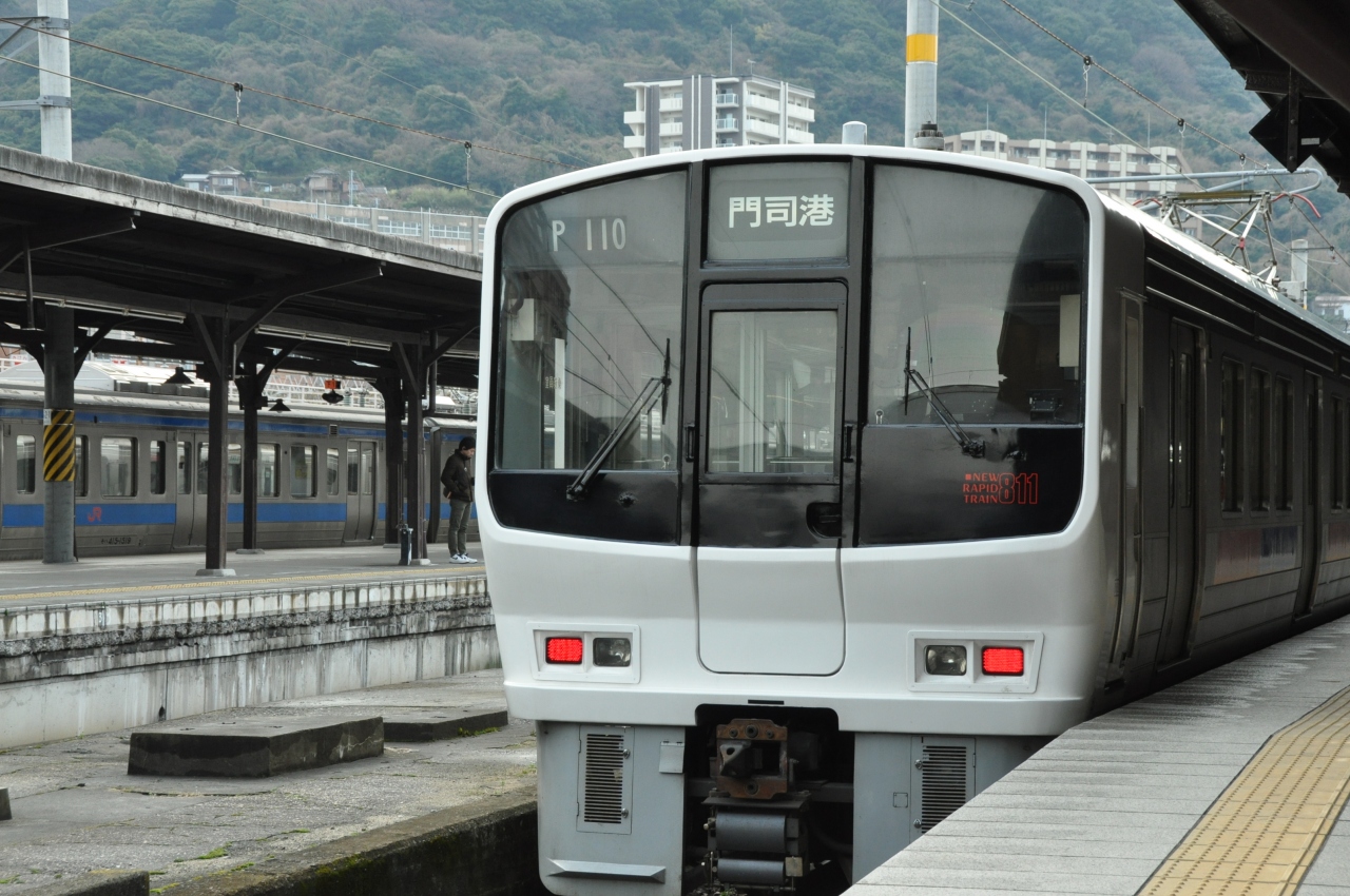 フルムーングリーンパスの旅3日目は、三河安城のホテルを出発して新幹線で一路、博多を目指した。その途中に立ち寄ったのが門司港である。というのも、三河安城を予定より一本早いこだまに乗れたので、門司港に立ち寄ることにした。小倉で新幹線さくら号から普通列車に乗り換えて門司港に近づくにつれて、いかにもという趣の列車と何回もすれ違い、にわか鉄ちゃんの心がくすぐられた。いよいよ門司港に到着すると、レトロな雰囲気の列車が何両もあるし、駅名やトイレの標識などもレトロで、「とうとう門司港に来た」という気持ちにさせてくれた。惜しむらくは駅舎が改修工事中で全貌をこの目で見ることができなかったこと。ただ修復工事中のフェンスの奥から、老朽化した門司港駅舎の一部がかいま見えたところに、レトロなままの雰囲気を感じ、写真に収めることができたのは大きな収穫だった。
