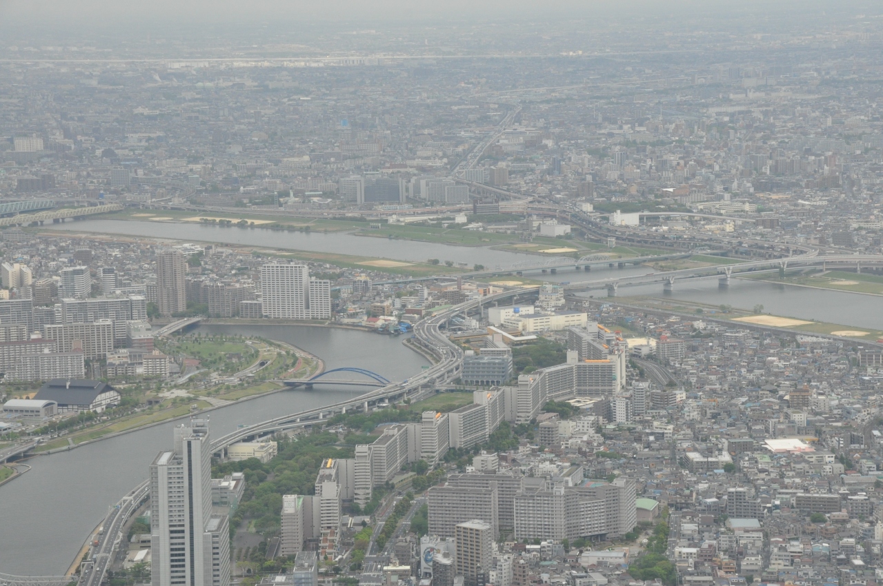 週末の朝イチで浅草見物をして、その後スカイツリーに向かった。あらかじめチケットを予約して当日を迎えると、その日は強風により当日のチケット販売は中止とのこと。ただしチケット事前予約者は入場OKだったので、結果的にはほとんど待つことなくエレベーターにも乗れて大ラッキーだった。エレベーターは超高速かつ超静粛に上まで連れて行ってくれた。10円玉を立てたまま倒れない、というのは決して誇張ではないと実感した。展望台からの景色はさすがにすごかった。どんな高層ビルも遙か眼下に見下ろせた。ガラス床も高所恐怖症の自分には超スリルがあった。と同時に眼下に広がる景色を見ていると、東京は本当に人口密集地で建造物もここまで密集していたら、この先どうなるのだろうか?と思った。前々日に東京タワーからの景色を見たが、スカイツリーから見ると、また別の世界が広がっているような気がした。