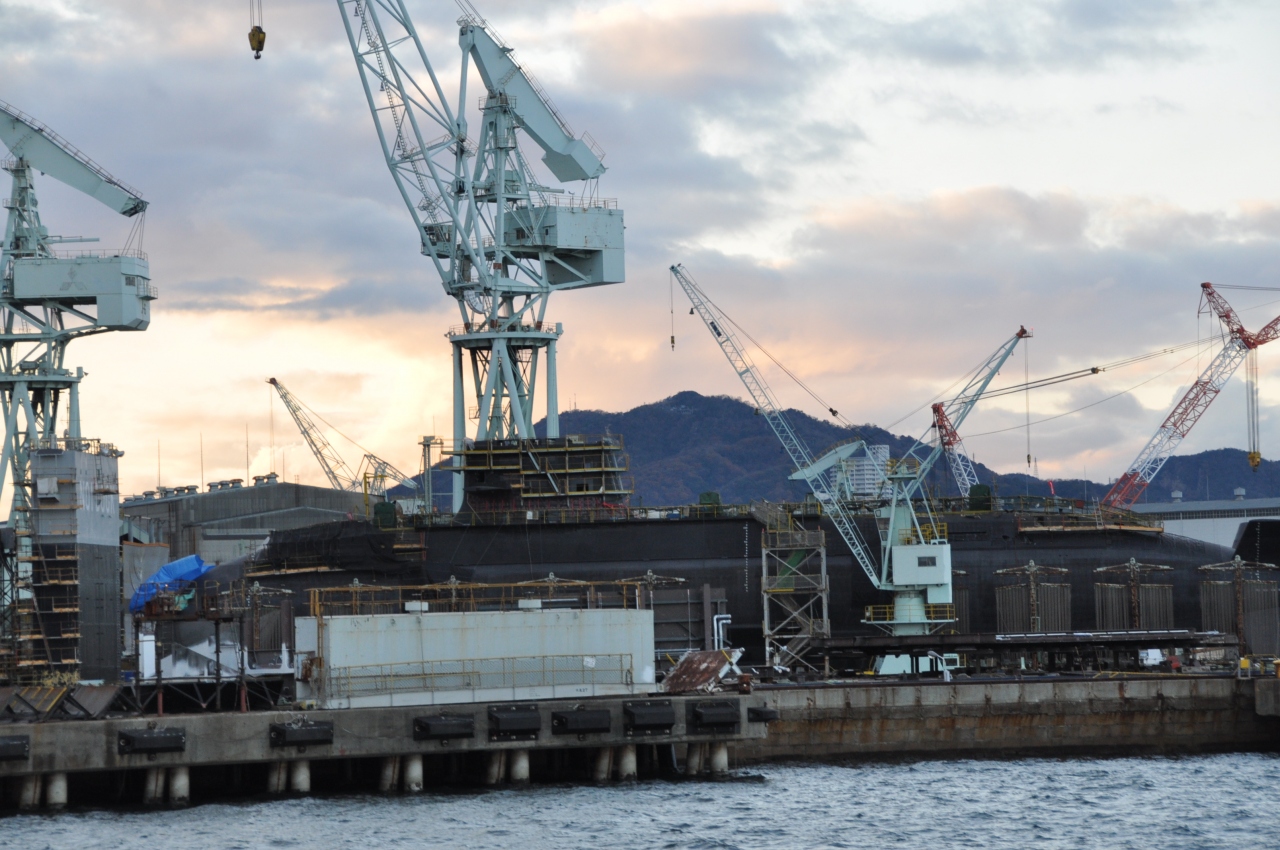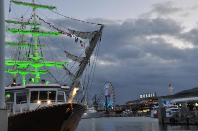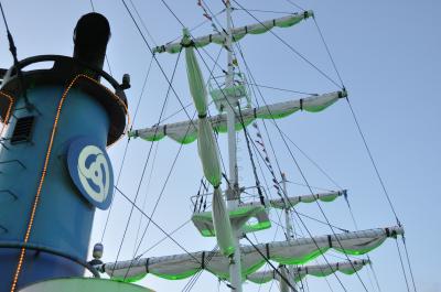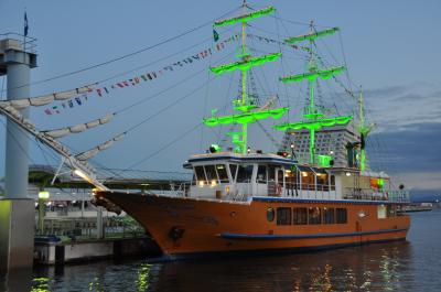 関空から三宮までの最短であるリムジンバスに乗り、昼食を済ませた後に南京町中華街をゆっくりブラブラするはずだったが、連れ合いが体の不調を訴えたので、次の予定である神戸港クルーズを先にして休憩を兼ねることにした。従って、当初は薄暮から夜景を見られる頃を予定していたが、昼間から薄暮に差し掛かる時間帯となった。乗ったのは、帆船型遊覧船オーシャンプリンス号で、出港すると、造船所の巨大クレーンが見え、メンテナンス中の自衛隊の潜水艦も見えた。船内の座席に座ったままでは写真も撮れないので、結構歩き回ったが、やはり海上から陸の景色を見るのは地上からとは違った雰囲気を楽しめた。そして港町はやはり薄暮からの夜景が特に絵になる。