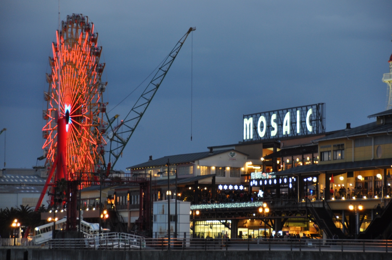 夕方、神戸港クルージングを終える頃から薄暮の時間を迎え、次第に辺りが美しい夜景タイムとなっていった。モザイクのショッピングモールや観覧車がライトアップされると、とても綺麗だった。しばし夜景撮影をして中に入るとクリスマス時期はクリスマスモード一色だった。ただモザイクショッピングモールはほとんどがファッションや雑貨が中心で、自分としてはあまり興味がないので、ちょっとしたイルミネーションやサンタクロースを見つけて写真撮影をして、家人との待ち合わせの時間まで過ごした。これはこれで楽しめた。
