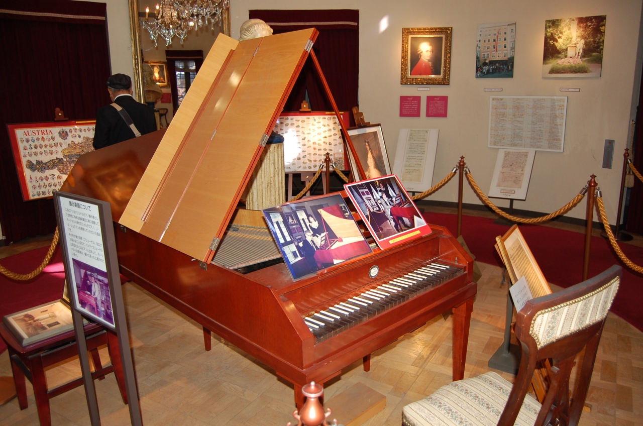 ウィーンオーストリア館はモーツアルトを中心としたオーストリア文化の紹介をしている。ガーデンテラスのカフェも良い雰囲気を醸し出していた。館内は19世紀後半の貴族の館を再現し、マリアテレジアの肖像やロココ調の衣装などを展示していた。また1階のモーツアルトの部屋ではモーツアルト生誕の場を再現したり、2階にはモーツアルトの時代のピアノのレプリカ、そして直筆の楽譜や手紙などを展示していた。中にはザルツブルグのモーツアルトミュージアムから寄贈された品もあるそうだが、今一つ何か心惹かれるモノが欲しい、それは何か?一つは音楽ではないか? 映画「アマデウス」で、モーツアルトの音楽のあまりの素晴らしさに、サリエリが自分はライバルの資格すら無いことに気づき、手にした楽譜を落としてしまうシーンのように、珠玉の名曲を最高のオーディオシステムで流したらどうだろうか? でも「ここはあくまで北野異人館街の一画であり、モーツアルト博物館ではない」と言われればそれまでですが・・・。