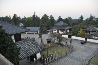 東大寺は今まで何回か行ってますが、二十年ほど前に行った時に見た土壁の回廊を見たくて、ネットで調べてみると二月堂に向かう途中にあることが判明。仕事で奈良に行く機会があったので、朝の散歩として東大寺そして二月堂と三月堂に向かいました。仕事の出発時間に間に合わせるために、まだ薄暗いうちにホテルを出発して往復には1時間ほどかかりました。池の方から行ったので、坂を昇ってまず三月堂を見て、次に二月堂です。8世紀創建の仏堂ですが現存の建物は1669年の再建だそうです。国宝指定は近年ですが、建物の古さから昔の風情を十分感じ取れました。そして帰路、坂を下って行くと土壁の回廊がありました。二月堂をバックにして何枚も写真を撮りました。