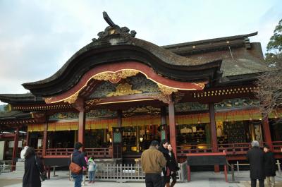 当日の朝、三河安城のホテルを出発して、門司港レトロを散策して博多に到着したのは昼過ぎです。ぐりーんバスに乗って市内めぐりをしようと意気揚々とバスの案内の方に乗り場などを聞くと、今、アムロのコンサートの関係で天神方面が渋滞で、いつバスが到着するかわからないとのこと。とにかく天神方面に行ってみようということで別のバスに乗ると、確かに大渋滞。何ヶ月も前から計画していたのに、このような形で頓挫するとは・・・愕然としつつも、「せっかく津軽海峡を渡って博多まで来て、ここでくじけてはいられない」と思い直し、新たに浮かんだ行き先は太宰府天満宮。交通機関や時間は事前に調べていないので完全にあてずっぽう。訳わからずに乗った列車は各駅停車で、メチャクチャ時間がかかりました。それでも太宰府駅に着いて参道を歩くと、両側にお土産屋さんが並び、何かホッとした気持ちになりました。鳥居をくぐり、橋を渡って、桃山時代の華麗な御本殿に向かい、「ここが太宰府天満宮なんだ」「これが飛梅なんだ」としみじみと思いながら歩きました。ここまで来たら九州国立博物館にも行きたかったのですが、夕方の閉館時間間近だったので断念。帰路、まだ営業している参道のお土産屋さんで、梅が枝餅を買って食べました。これが柔らかくておいしかったので満足。