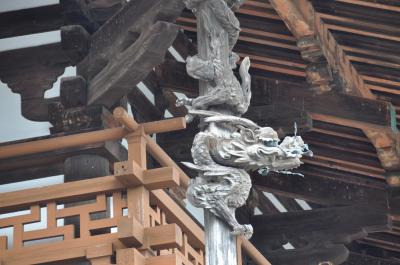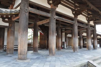 法隆寺は高校の修学旅行(当時は青函トンネルはまだなく、青函連絡船で津軽海峡を渡り寝台列車「日本海」で京都へ)で行っただけなので、数十年ぶりで拝観しました。当日の朝、大阪のホテルを出発してJRで法隆寺駅へ行き、参道に入るとちょっとしたワクワク感があり、まず国宝の南大門が迎えてくれました。そして何人も通ることができない中門の前に来ると、奥に五重塔が見えて、この眺望もすでに感動でした。向かって左側の入口で拝観料を払って西院伽藍に入ると、世界最古といわれる五重塔と金堂が目の前に現れます。中門の柱がエンタシス様式であることを再確認し、大講堂や回廊など国宝建築物に囲まれ、法隆寺に来たことを実感して、四方八方から写真を撮りまくりました。金堂の柱には龍の彫刻が施されていることも、実物を見て知りました。