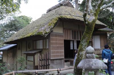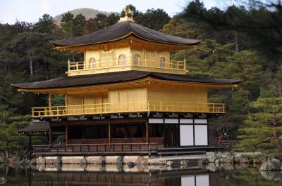 2泊3日の関西旅行二日目に行きました。朝イチで宇治に行き、宇治上神社と平等院鳳凰堂を拝観し、いよいよ金閣です。バスで移動し、拝観まで少し行列をつくって待っていると、他の人達が「金閣ってホント、ヤバイっすよ」と言ってましたが、高校の修学旅行で遥か遠くから拝み見るような印象しかなかったし、「そんなにすごいのかな?いくらすごいといっても復元だしな~」と思っていました。そしていよいよ視界に入ると、ビックリ仰天です。たとえ再建であっても、これだけ絢爛豪華で、池の対岸から間近で見ることができるので、もう感激。銀閣とは全く別の世界がありました。金閣の裏側を回って庭園内を歩くと、陸舟の松や茶席「夕佳亭」があった。超観光地化されているといえばそれまでだが、世界遺産に認定されているのも納得。
