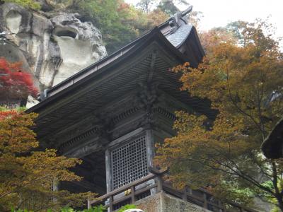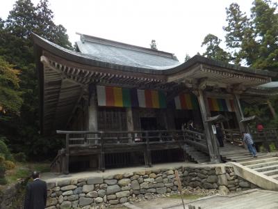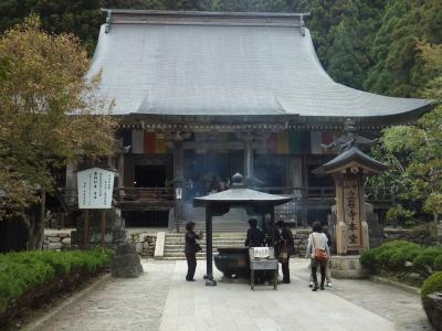 仙台から山寺行きのJR快速で行きました。山寺に近づくにつれて少し寒くなったような気がしました。列車を降りるとホームから山寺が見えるので、この時点でワクワク感に包まれます。駅から少し歩けば目的地の山寺に到着です。参道を進むとまず根本中堂があり、歴史を感じさせる木造のお堂です。お寺は貞観2年(860)清和天皇の勅願のよって慈覚大師が開き、根本中堂は初代山形城主・斯波兼頼が1356年に再建したということなので、室町時代初期の建造物です。国の重要文化財に指定されています。