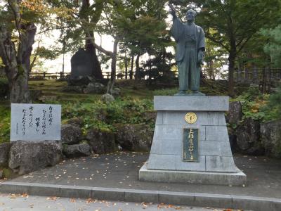 山形市で仕事を終え、せっかくだからどこかへ行こうと選んだのは上杉神社、同僚4人とともに行きました。山形から初めて山形新幹線に乗りましたが、あまりの遅さに「新幹線のスピードってこんなもん? これじゃ在来線とあまり変わらない」という感じでした。山形新幹線は新幹線車両で走る在来線特急扱いであることを知ったのは、後日です。JR米沢駅から上杉神社まではけっこう距離があるので、バスに乗って行きました。NHK大河ドラマ「天地人」の関係からか、上杉景勝と直江兼続主従の銅像もありました。奥に進むと、上杉鷹山公の銅像が。鷹山公については、藩主となった当時の米沢藩は借金地獄に苦しんでおり、鷹山公は藩主として財政改革に取り組んで奇跡的とも言える成果をあげたことを、約20年位前に本で読みました。ただしそれを彷彿させるものは、鷹山公の銅像の表情から人となりを偲ぶ以外あまりなかったと思います。