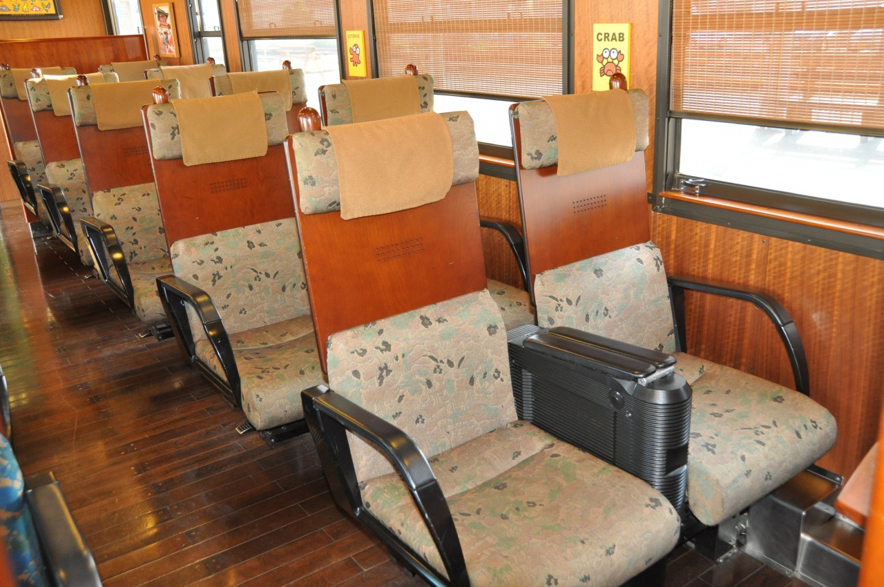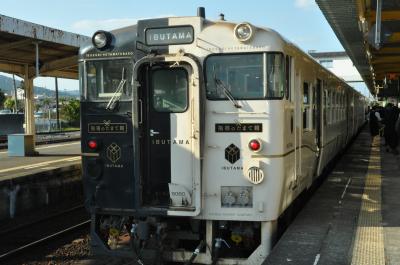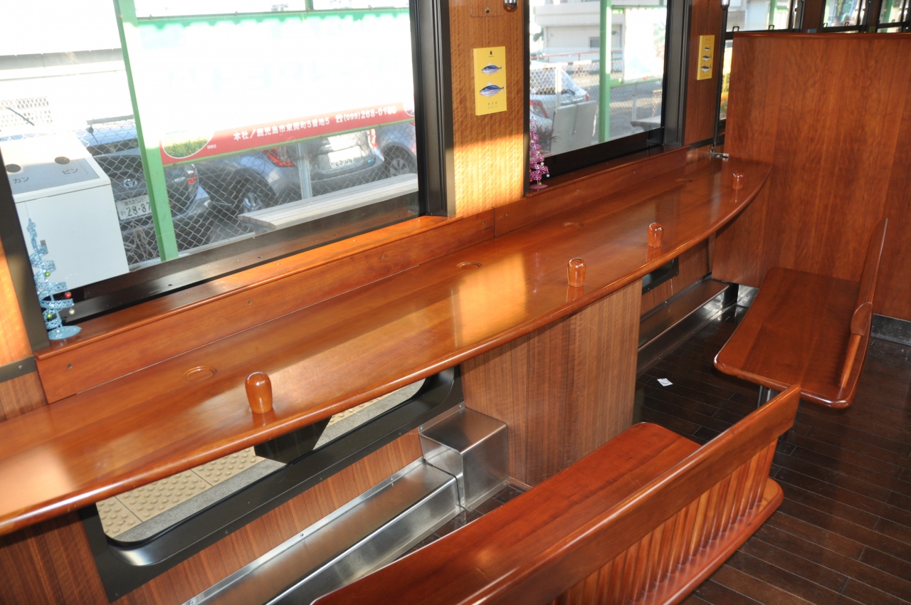 いぶたま号に乗って指宿へ・・・指宿といえば砂蒸し風呂ですが目的はただ一つ、いぶたま号の乗車です。ネットを使って事前に車両編成やシートマップを調べて、海側のお気に入りの席を取ることができました。いざ乗ってみると、外装はもちろん内装も本当にオシャレな感じで、何か別世界にきたような温もりを感じました。鹿児島中央駅を出発してしばらくの間は、とても揺れました。「一応特急列車のはずなのに、こんなに揺れる?」と思いましたが、そのうち落ち着いてきました。鹿児島中央駅で買ったクロワッサン鯛焼きを食べながら、美しく静かな錦江湾を眺めました。途中、アテンダントさんがクイズを出してくれました。復路も同じ列車の違う座席に乗りました。そして、隣席の老兄弟や鉄道好きと覚しき父子と少しお近づきになって、楽しいひとときを過ごしました。