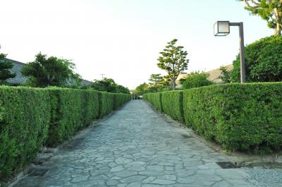 城巡りにあこがれ、ようやく姫路、犬山、彦根、松本の国宝四天守を制覇し、熊本城の石垣や、復元ながらも名古屋城の優美さにしびれていました。今夏、伊勢志摩鳥羽方面を旅行し、初日の宿泊地として松阪を選びました。夕方に駅近くのホテルに着いたので、松阪城跡は朝の散歩で行きました。今は、小高い山に築かれた石垣を残すのみですが、頂上に行く道がくねる様子に城跡を感じ、石垣の様子から往時は相当な規模を誇る城郭だったんだろうなと思いました。ホテルに戻る道すがら武家屋敷跡を通り、ここは江戸末期に紀州藩士が松坂城警護のため移り住んだ御城番屋敷で、今も生活されている方がいらっしゃるそうですが、厚い垣根に囲まれた静かな歴史空間という感じがしました。歴史に思いを馳せることができました。