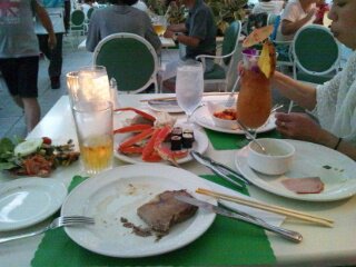 スーパーでは、日本の電話番号を告げるだけで割引(5%程度?)してもらえるし、品揃えもOK!リーズナブルで豪華な食事が出来ました。- 旅行時期
