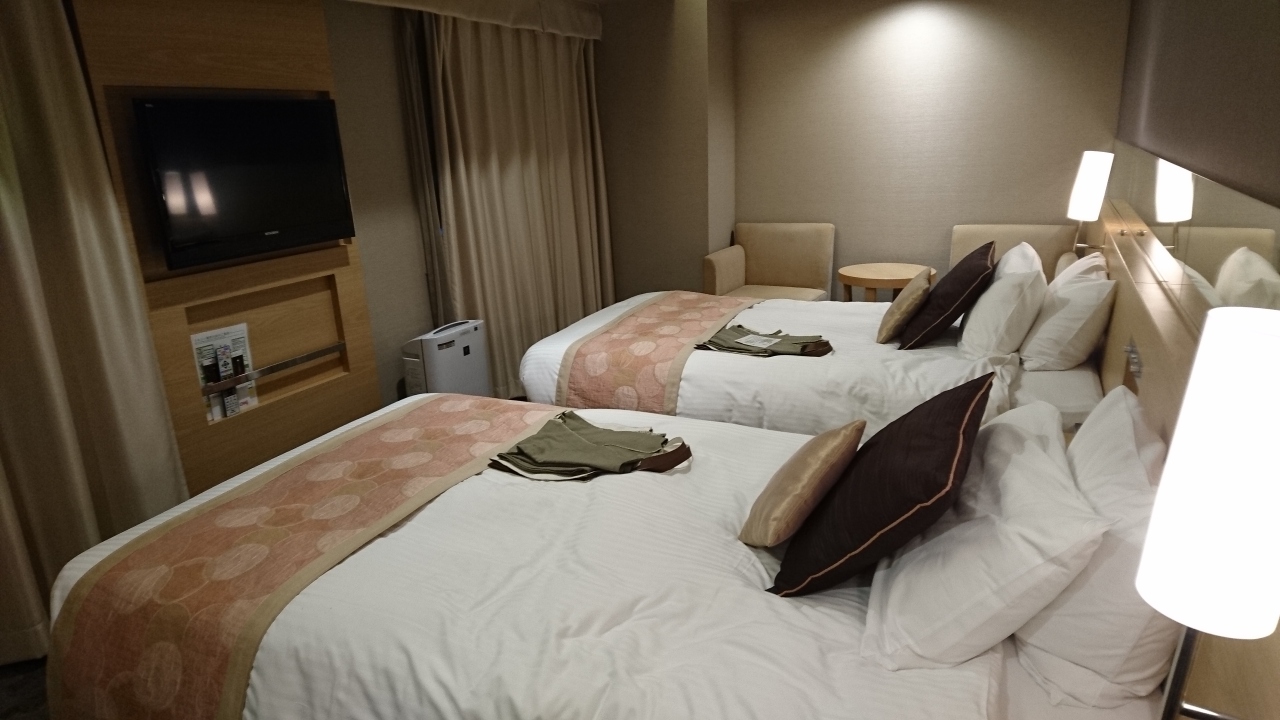 前の宿泊客がちょうどチェックアウトしたとかで、予約していたプランよりも一つ上の部屋に同じ料金で泊まることができました。