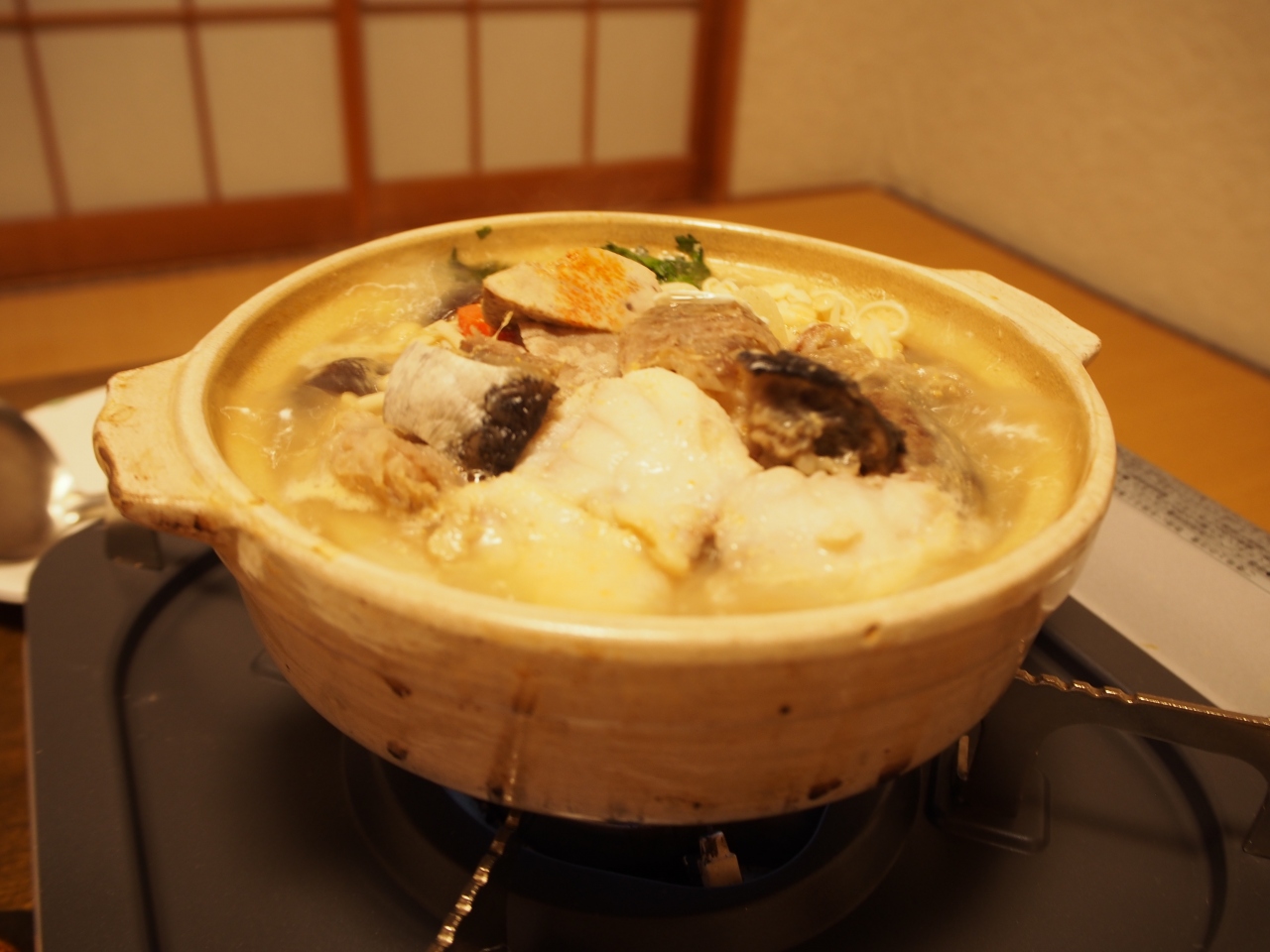 夕食前には手作りのお菓子を頂き、その後の夕食のあんこう鍋も美味しかったです。ボリュームたっぷりでお腹いっぱいになりました。