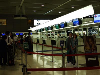 出発は10:30ですが、カウンターは8:00オープン、会社の人はミーテ...