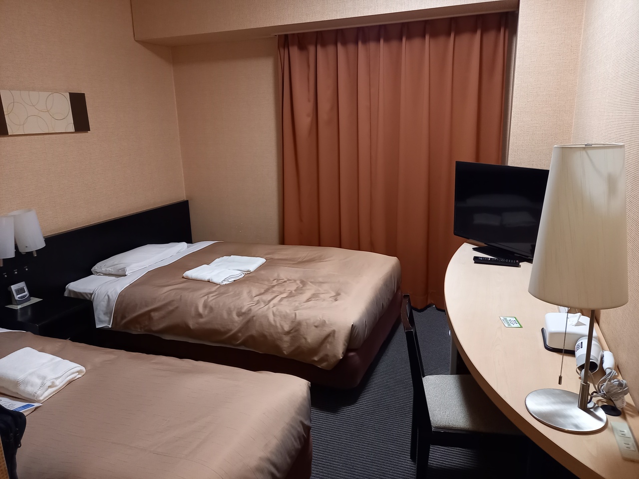 小倉駅の南、徒歩10分以内です。シングル1泊でお願いしましたが、11階のツインを用意していてくれて、広々使うことができました。お風呂は部屋以外にも大浴場があり、足を伸ばして入る事が出来ました。