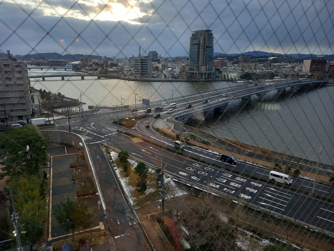 宍道湖大橋を北に渡った所にあります。松江城の近くです。大浴場は別館三階にあります。レストランは本館の9階にあり、眺望が良いです。朝食は、バイキング形式で、島根の特産ノドグロや出雲そばもありました。綺麗でお勧めのホテルです。