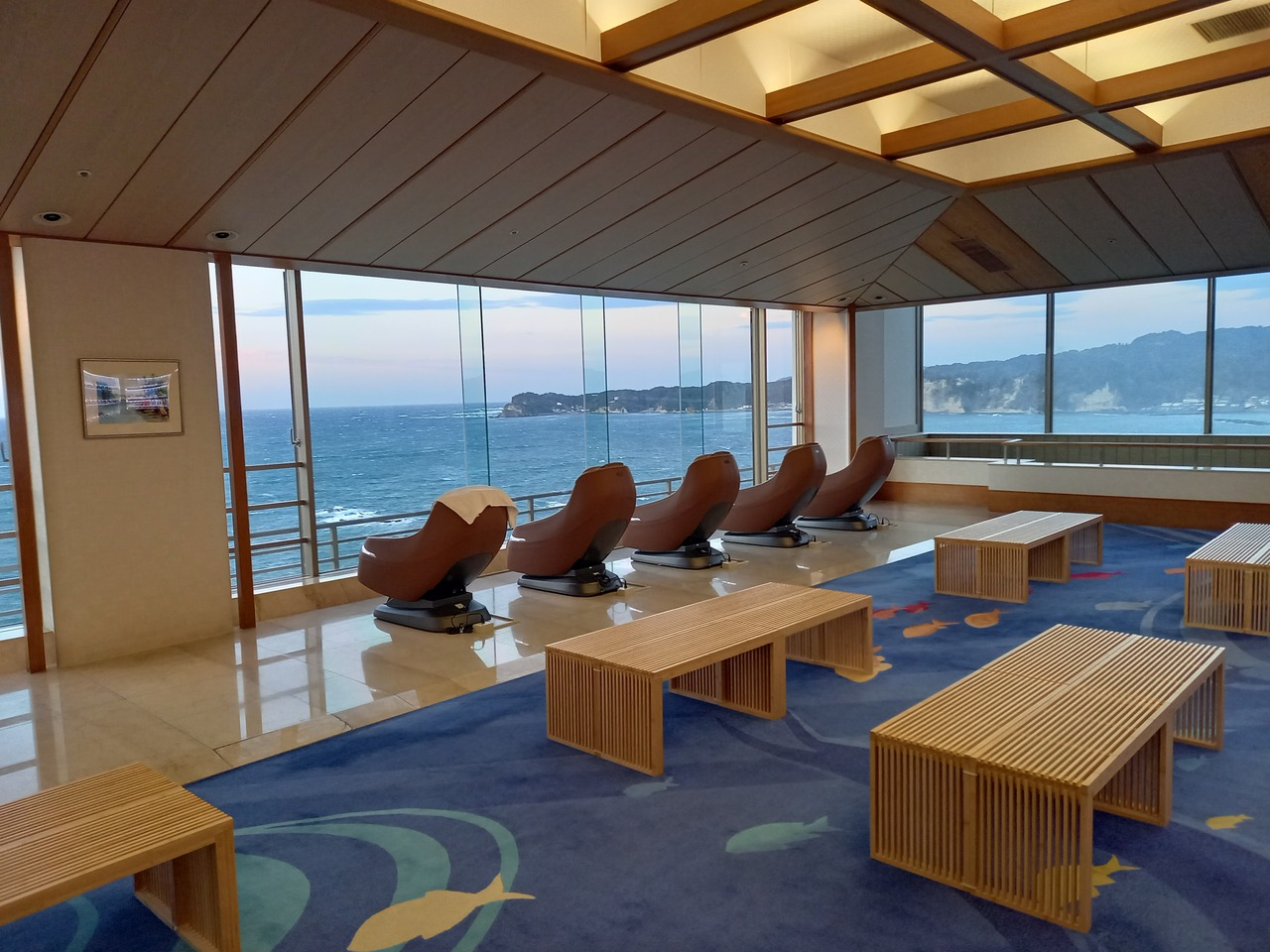 かつうらビックひな祭り期間にホテルを利用しました。勝浦駅から徒歩圏内で、ビッグひな祭り会場や漁港市場、朝市にも近く便利な場所にあります。お風呂のラウンジでは、マッサージしながら夕日を望むことができます。朝のバイキングでは、セルフ海鮮丼コーナーもあり、勝浦の美味しいものを堪能できます。おすすめのホテルです。