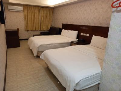 台北駅の近くです。向かえにはファミリーマートもあります。ホテルはビルの4階にあります。ビルの外観は地震きたら倒れるのではという感じです。一方、ホテルは近年改装したのか、非常に綺麗です。一人での泊まりでしたが、ツインの部屋で広々使うことができました。お風呂もバスタブが付いておりゆったり足を伸ばすことができました。これで6000円位なので、外観はともかくお勧めのホテルです。
