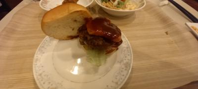 夕食の一番人気はライブキッチンのハンバーガーでした。ビュッフェ会場は広いので、料理の近くに座るのをお勧めします。