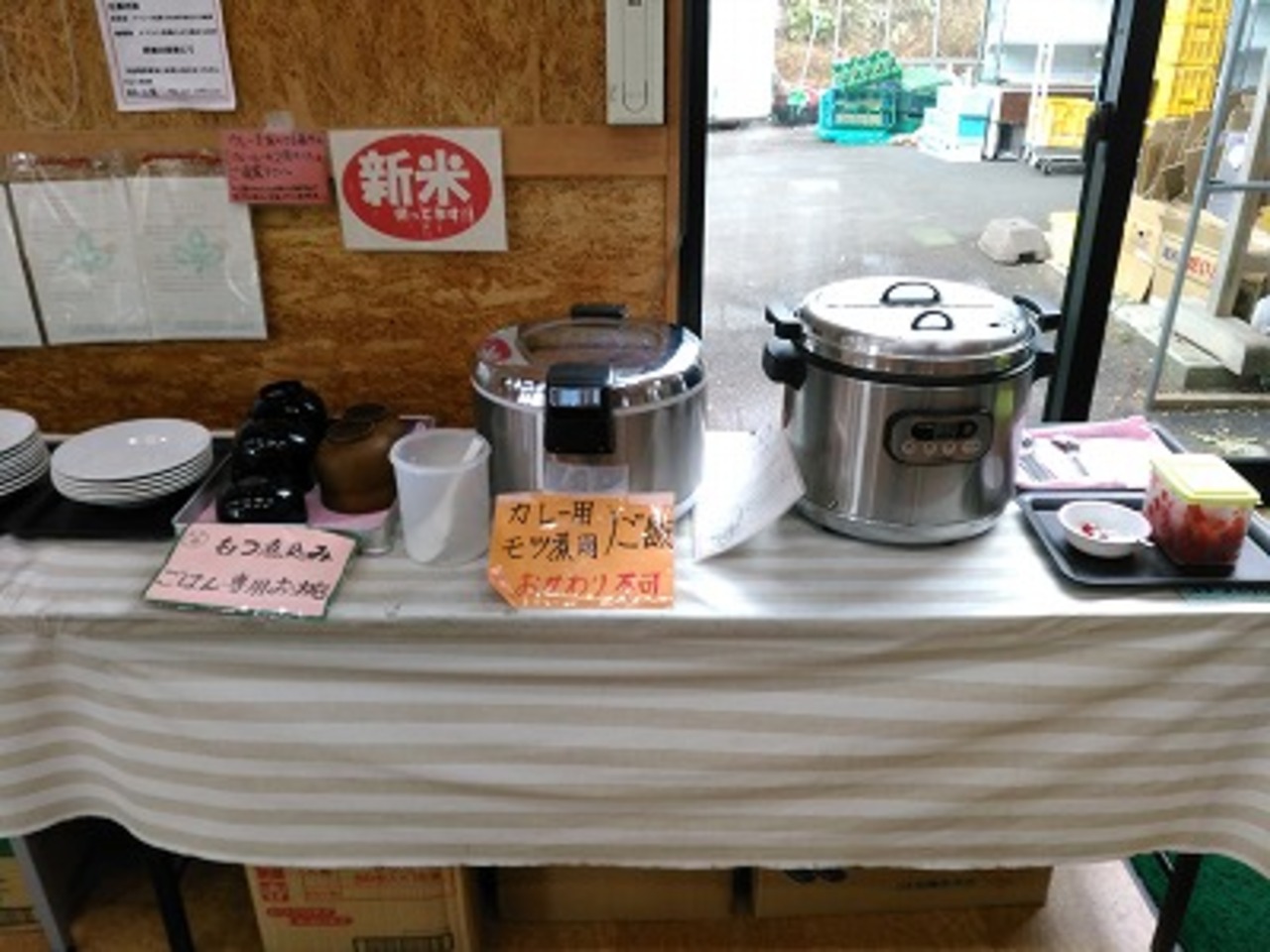 利府街道の仙台と利府の境、仙台方向車線でラーメンで有名な九兵衛の近くです。産直なので、野菜が新鮮で安いのですが、食事も見逃せません。まず、カレー350円でもびっくりですが、セルフなのでカレーかけ放題、ご飯盛り放題です。途中でのカレー足しやお代わりは禁止ですが、どれだけ食べられるかチャレンジしてみて下さい。もつ煮は400円で持ち帰りもできますよ。