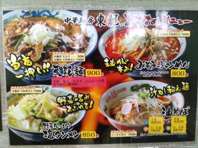 4号線仙台バイパス、下り車線側の名取市と仙台市の境付近に店があります。正油ラーメン、塩ラーメンはともに650円です。お店の一番押しは店の名前が入ったその名も東龍麺900円です。麻婆茄子あんかけラーメンですよ。