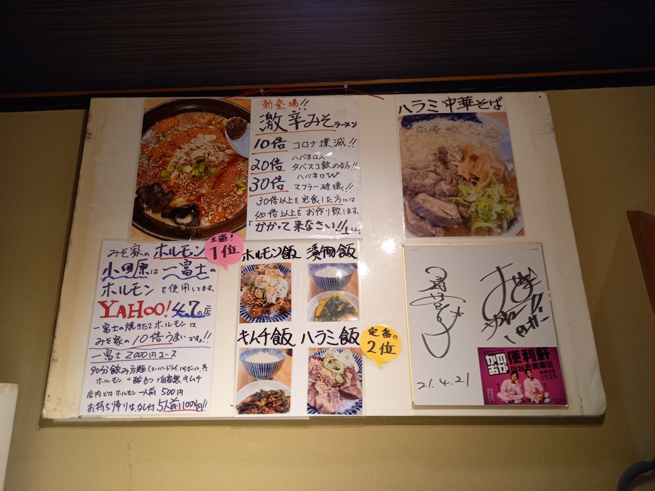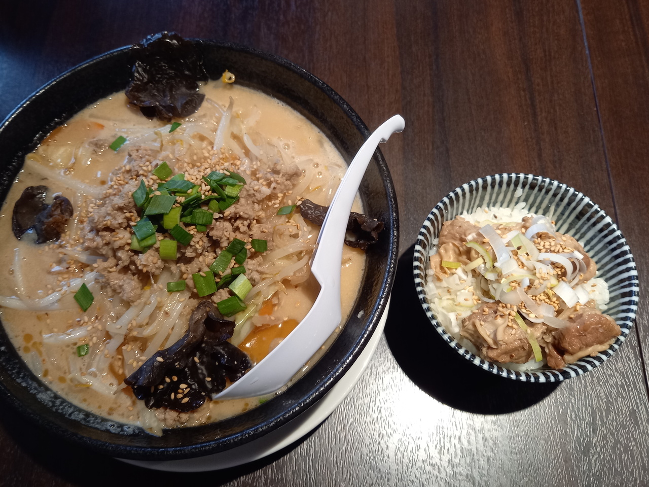 国の合同庁舎の真ん前にあります。店内は1階はカウンターのみ、2階はテーブル18席です。食券制で、みそラーメンは780円です。プラス100円でご飯ものを追加出来ます。今回はみそラーメン780円にご飯ものの中からハラミ飯をいただきました。麺は極太麺で噛みごたえがありました。スープはドロッと系でした。ハラミ飯はぐにゃぐにゃ系で食感が面白かったです。夜はモツ焼きと二品付きセルフ飲み放題2000円もやっているようです。