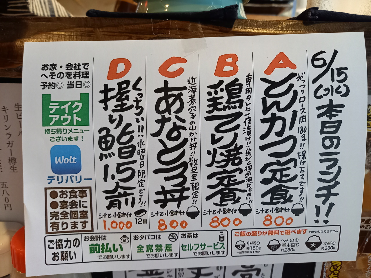 4年振りの来店です。今回は一日20食限定の日替わり定食700円をいただきました。行った日の日替わりは金華さばの定食でした。金華さばは大きくて食べごたえがありました。しっかり味も付いているので、醤油は要りませんでした。小鉢の他に納豆も付いててご飯いっぱい食べられます。お得です。