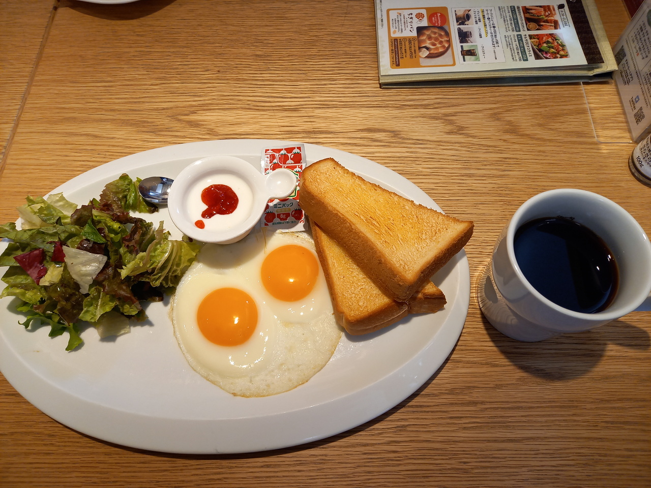 仙台地下鉄富沢駅の西側にあります。すかいらーくグループです。モーニングサービスが充実してます。ドリンクを頼むとトースト4種類のいづれかが無料です。ドリンクはコーヒーが420円からあります。今回はBモーニング280円とブレンドコーヒー420円をいただきました。Bモーニングはトースト二枚、目玉焼き二個にサラダのセットです。見た目が綺麗です。店の感想は、店員さんの接客が素晴らしい、店内落ち着いている、客の年齢層が高いでした。