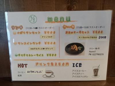 定禅寺通沿いの建物の2階にあります。カウンター3席、テーブル4席です。店内はパンやクッキー、小物類の販売も行っています。ランチはナポリタン、カレー、パンとドリンクのセットの三種類です。今回はナポリタンの単品500円の大盛り100円増しをいただきました。メニューにはドリンク付き700円と書いてありましたが、単品にも出来ました。麺は細麺、味は酸味が強く今までの最強だと思います。カレーはチマチマカレーと言う名前です。大阪にある発酵食堂チマチマで出しているカレーと同じだと言う事でした。次回チャレンジしてみたいと思います。
