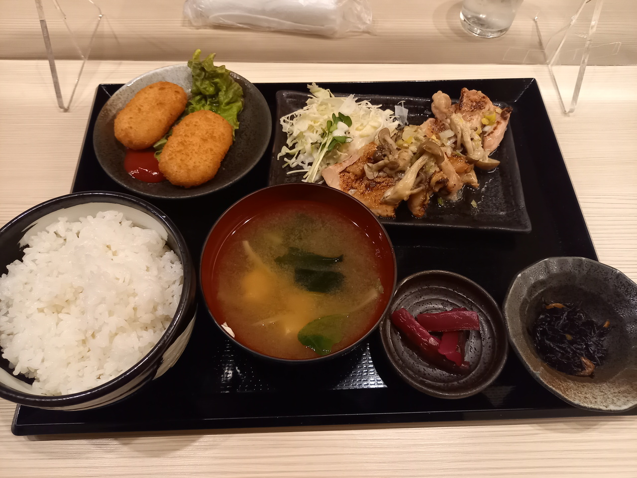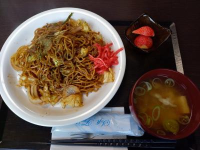1ヶ月振りの来店です。今回は焼きそば510円の大盛り100円増しをいただきました。焼きそばには、焼きそばの他に、味噌汁とデザート(この日はイチゴ)が付きます。焼きそばは、結構濃い味でした。水が必要です。味噌汁は具が多いのが嬉しいです。