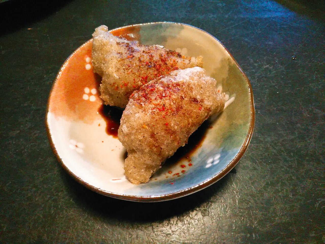 仙台駅前にあります。パルコの1階です。立ち席が15席位、カウンターとテーブル合わせ30席位です。立ち飲み1000円コースがあります。飲み物三杯とつまみ一品か飲み物二杯とつまみ二品どちらかを選べます。今回は、飲み物三杯をいただきました。つまみは大根のおでんでした。大根はトロトロでした。酒につまみが追い付かないので、追加でおすすめの鶏つくねレンコンをいただきました。形は予想したのと違い、大きいつくねにレンコンがちりばめられていました。ちょっと肉が堅めでしたが、良かったです。