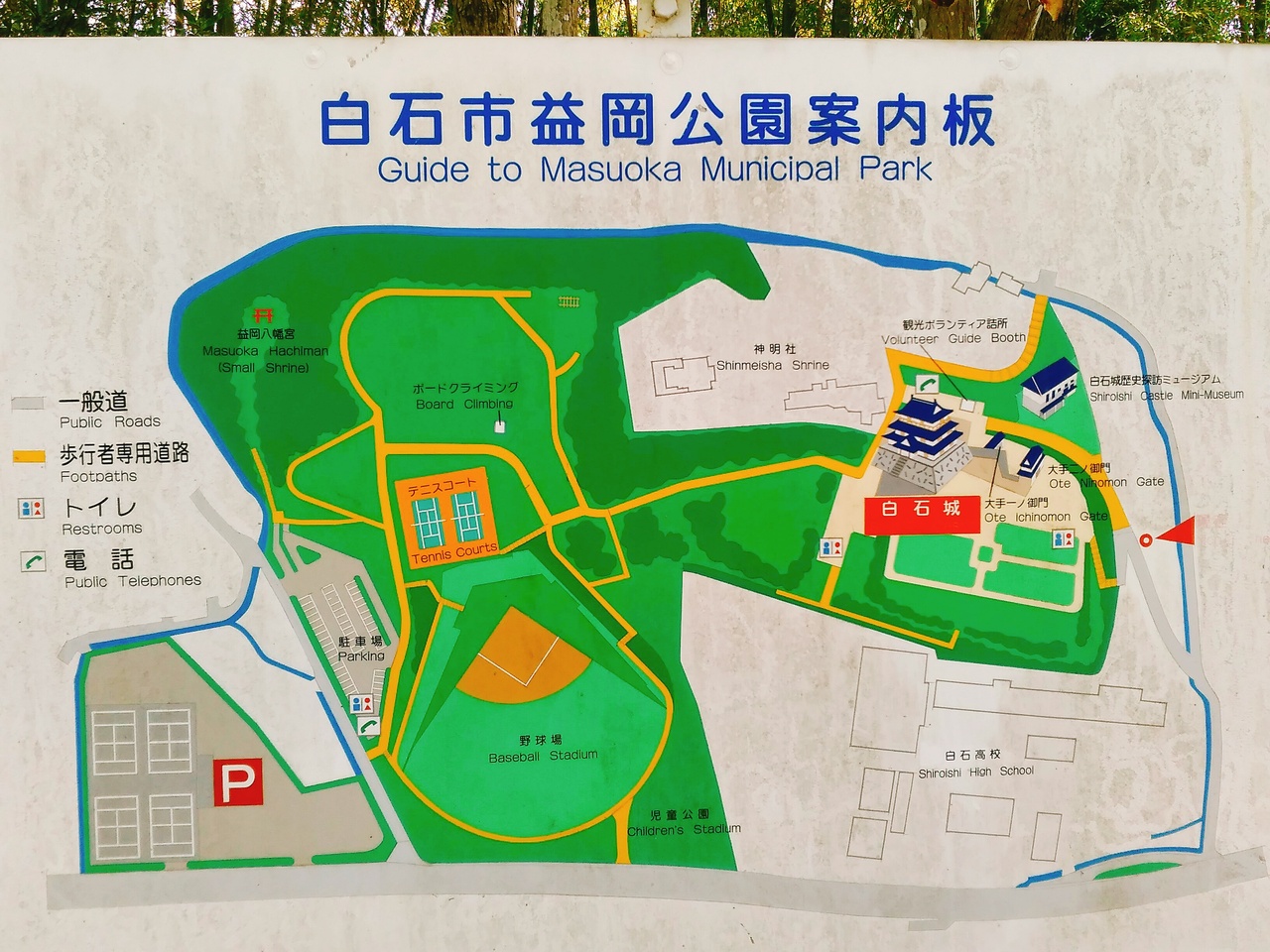 白石市役所の西側にあり、白石城を中心とした公園です。駐車場は市役所の他に分散しているので案内看板を注視してください。公園内には、白石城の他に、白石城歴史探訪ミュージアム、神明社等があり、白石市の観光では外せない場所です。公園の廻りの散歩もゆったりした感じで、良いと思います。